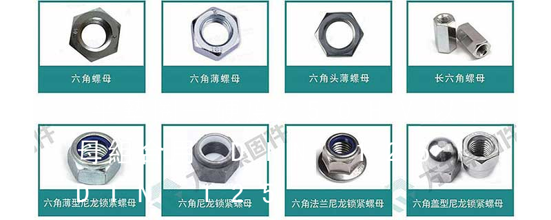 ②開槽螺母:主要指六角開槽螺母,即在六角螺母上方加工出糟。它與螺桿帶孔螺栓和開口銷配合使用,以防止螺栓與螺母的相對(duì)轉(zhuǎn)動(dòng),見GB6178—6181等。③鎖緊螺母:指具有鎖緊功能的螺母,有尼龍嵌件六角鎖緊螺母,見GB889、GB6182、GB6183和全金屬六角鎖緊螺母,見GB6184—6187。④特殊用途螺母:如碟形