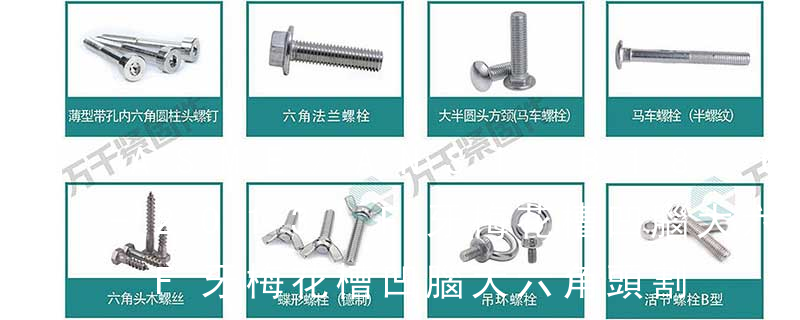 1.機螺釘 2.自攻螺釘 3.鉆尾螺釘 4.墻板釘 5.纖維板釘 6.木螺釘7.六角木螺釘 8.不脫出螺釘 9.組合螺釘 10.微型螺釘 11.家具螺釘 12.電子螺釘頭型:1.六角頭(hexagon head) 2.六角頭法蘭面(hexagon head with flange) 3.