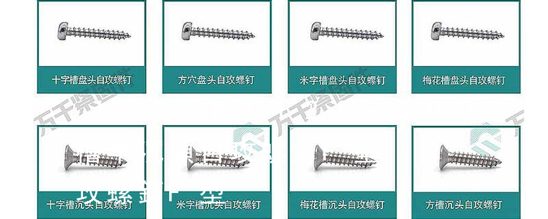 1)十字槽盤頭自鉆自攻螺釘 2)十字槽沉頭自鉆自攻螺釘 3)十字槽半沉頭自鉆自攻螺釘,跟上面沉頭螺絲接近。4)六角法蘭面自鉆自攻螺釘 5)六角凸緣自鉆 自攻螺釘根據材質可分為:鋼材1022A,不銹鐵410,不銹鋼304