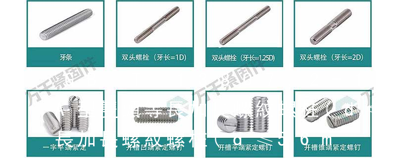 1.一般來說,GB/T 901 和GB/T 953 是等長雙頭螺柱的標準,里面規定了各型號螺柱公稱長度l 相對應的螺紋段標準和加長長度b,當選用的l-2b≤0時,就是全螺紋螺柱了 2.另外,其實全螺紋螺柱這個定義主要在HG20592鋼制管 QJ 2741-1995 MJ螺紋1100MPa/235℃雙頭螺柱(bm=1.5d)QJ 2742-1995 MJ螺紋1100MPa/235℃雙頭螺柱(bm=2d)QJ 2743-1995 MJ螺紋1100MPa/235℃等長雙頭螺柱 QJ 2389-1992 等長雙頭螺柱 JG/T 5057.9-1995 建筑機械與設備