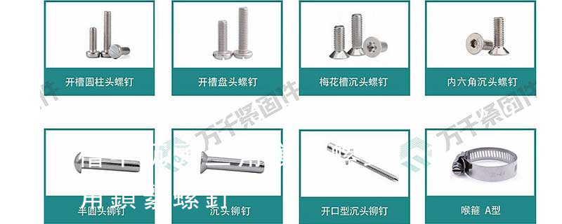 1.機(jī)螺釘 2.自攻螺釘 3.鉆尾螺釘 4.墻板釘 5.纖維板釘 6.木螺釘7.六角木螺釘 8.不脫出螺釘 9.組合螺釘 10.微型螺釘 11.家具螺釘 12.電子螺釘頭型:1.六角頭(hexagon head) 2.六角頭法蘭面(hexagon head with flange) 3.