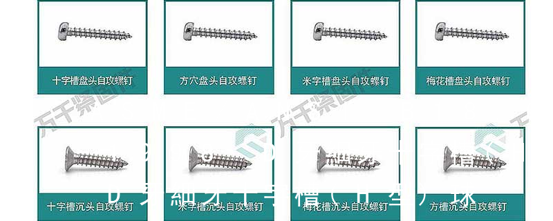 B:球面圓柱頭; C:圓柱頭; F(K):沉頭; H:六角頭;HW:六角頭帶墊圈; O:半沉頭; P:平元頭; R:半元頭;PW:平元頭帶墊圈; T:大扁頭; V:蘑菇頭;④ 螺釘牙型 A:自攻尖尾(日標第1種)疏 六角花形等;內扳擰:一字槽、十字槽H型、十字槽Z型、十字槽F型、四方槽、復合槽、內花鍵、內六角花形、內三角、內六角、內12角、離合器槽、六葉片型槽、高扭矩十字槽等。3、螺紋種類螺紋種類繁多,有自攻螺紋(