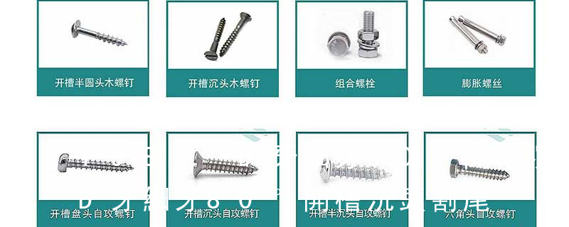 (鐵板牙自攻螺絲) B-2: Plastic Tapping Screw. (塑膠用,自攻螺絲) C: Wooden Screw : 木工螺絲 D: Drywall Screw :水泥墻螺絲 E: Self Drilling Screws鉆尾螺絲(不銹鋼鉆尾螺絲,復(fù)合材料鉆尾螺絲) F:膨脹螺絲,四片膨脹螺絲又